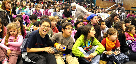 Pelas 9.30h começaram a chegar os primeiros autocarros (eram cerca de 30!). Nas mesas de acolhimento foi feita a separação dos adultos e das crianças, pois a manhã teve actividades diversificadas. Os adultos foram encaminhados para o pavilhão multiusos onde decorreu um colóquio subordinado ao tema “Caridade: fonte, tarefa e meta da catequese”, que contou com a partilha da deputada Dra. Rosário Carneiro, do professor universitário Dr. João Paiva, do casal Carlos João e Cláudia e do Bispo de Coimbra D. Virgílio Antunes; as crianças foram conduzidas para o castelo onde se realizou um jogo durante toda a manhã, numa delirante animação.