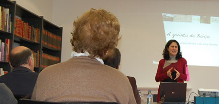 Sob o tema "A quinta da Boiça: percursos de uma propriedade e de uma família" fez uma breve contextualização histórica sobre a longa e multifacetada história desta quinta e da família aristocrática que nela viveu.