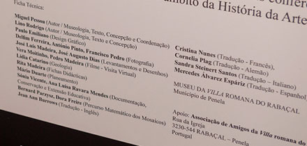 A presente mostra, composta de treze painéis de 1900x900mm, assistida de Catálogo, pode ser visitada de terça-feira a Domingo, das 10h à 13h e das 14h às 18h, no Salão Nobre do MNA. Tem como suporte de animação reproduções tridimensionais do artefactuário do mosaicista; uma mostra de 25 anos de publicações editadas; um filme sob título “Uma Visita Virtual à Villa romana do Rabaçal” “, com a aplicação à Internet; a elaboração de uma maqueta ao vivo, com a colaboração dos visitantes, sob a orientação de docentes da Faculdade de Arquitectura do Porto, à escala 1:2, da construção matemática, realizada em Novembro de 2007, pelo Arquitecto Álvaro Siza Vieira, subjacente no desenho da cobertura de protecção do Palácio romano do Rabaçal; e, ainda, a disponibilização para os mais novos, das fichas didácticas “ “Ver, Pensar, Fazer” “.