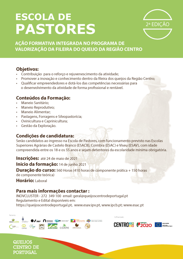 Destinada a abranger as três regiões DOP do Centro (Beira Baixa, Serra da Estrela e Rabaçal), a formação decorrerá nas Escolas Superiores Agrárias de Castelo Branco (ESACB), Viseu (ESAV) e Coimbra (ESAC), com um total de 36 vagas disponíveis. A duração da 2a edição da Escola de Pastores é de 560 horas de formação (150 horas de componente teórica e 410 horas de componente prática).