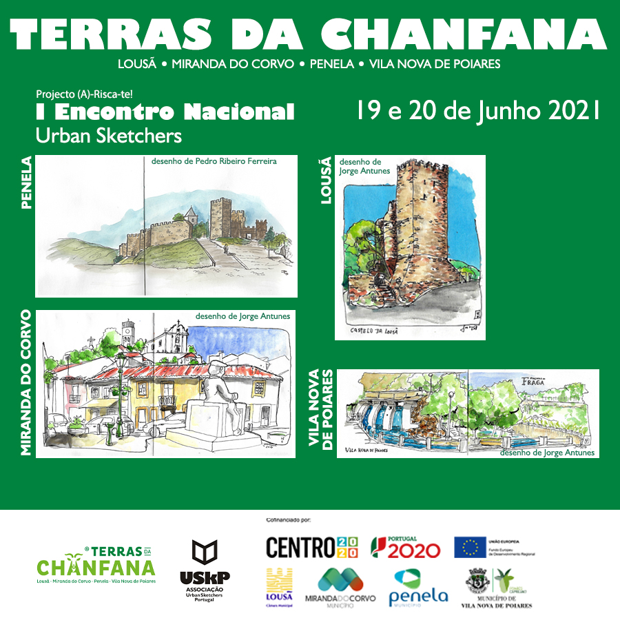 O I Encontro Nacional de Urban Sketchers irá realizar-se no próximo fim de semana, dias 19 e 20 de junho, nas Terras da Chanfana: Penela, Lousã, Miranda do Corvo e Vila Nova de Poiares, em estreita colaboração com a USkP - Associação Urban Sketchers Portugal.