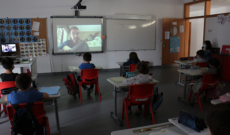 Hoje, dia 21 de maio, via plataforma zoom, os alunos do 1º ciclo dos Centros Escolares de Penela, Espinhal e Cumeeira, tiveram a oportunidade de desfrutar de um momento de elevado gosto musical. O guitarrista Bruno Costa foi o protagonista do evento